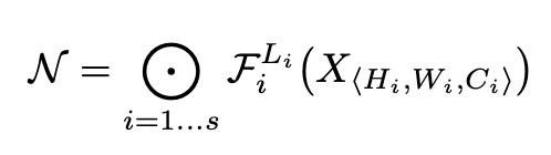 where refers the number of the layer, is the operator, is the input tensor with tensor shape . The superscript of denotes that the layer is repeated times in stage .